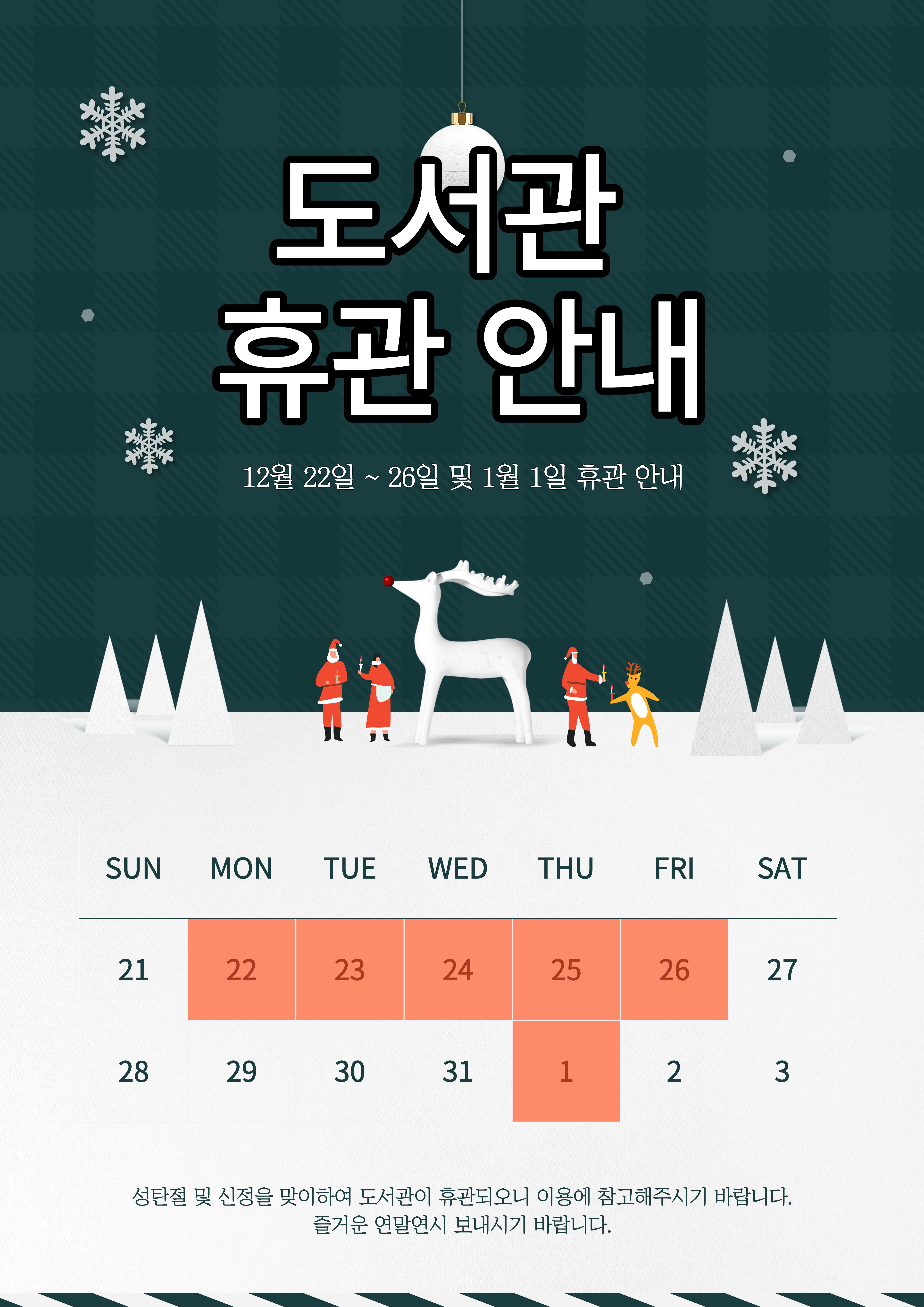 [공지] 2025-2학기 기말고사기간 [스터디카페 느티나무, 느티나무 정독실 임시개방] 안내
