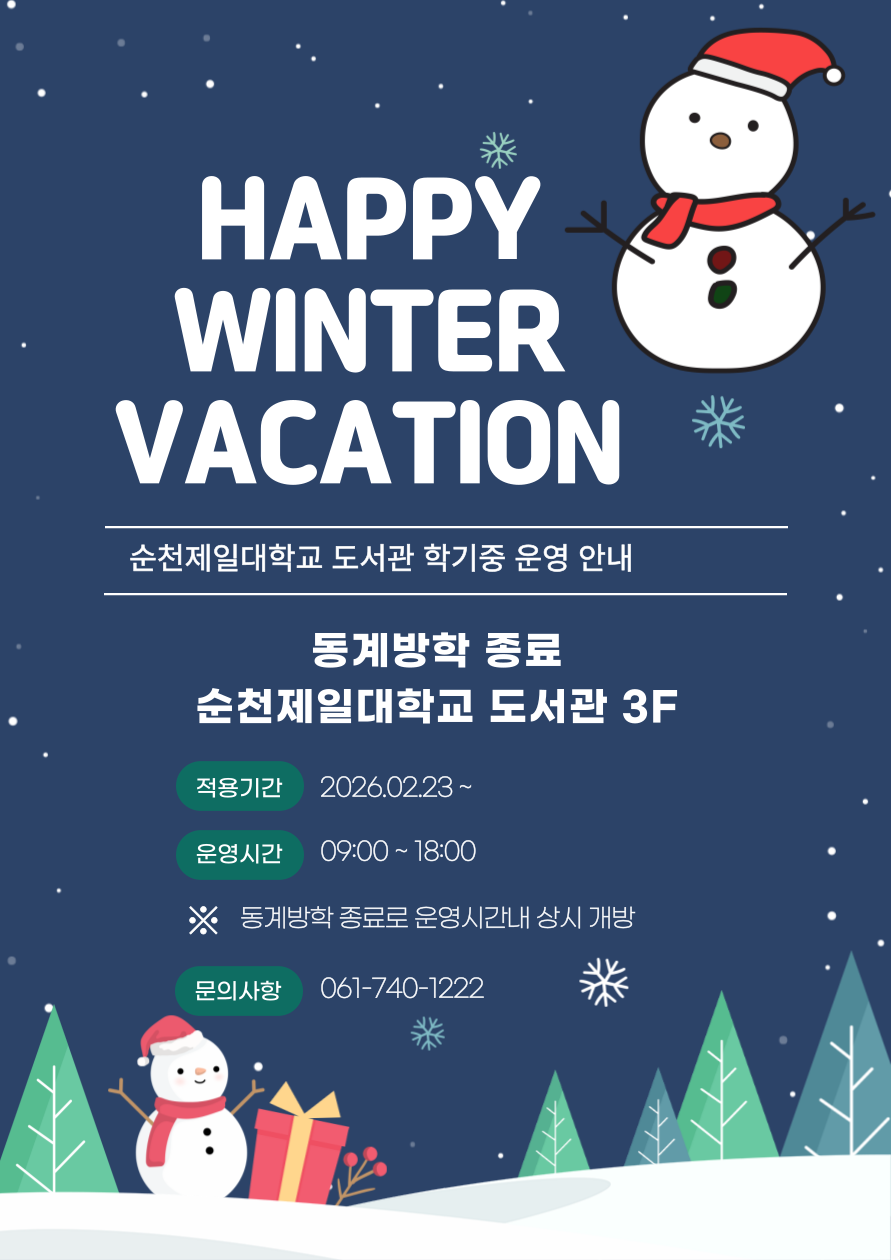 [안내] 동계방학 종료로 인한 자료열람실 운영시간 안내