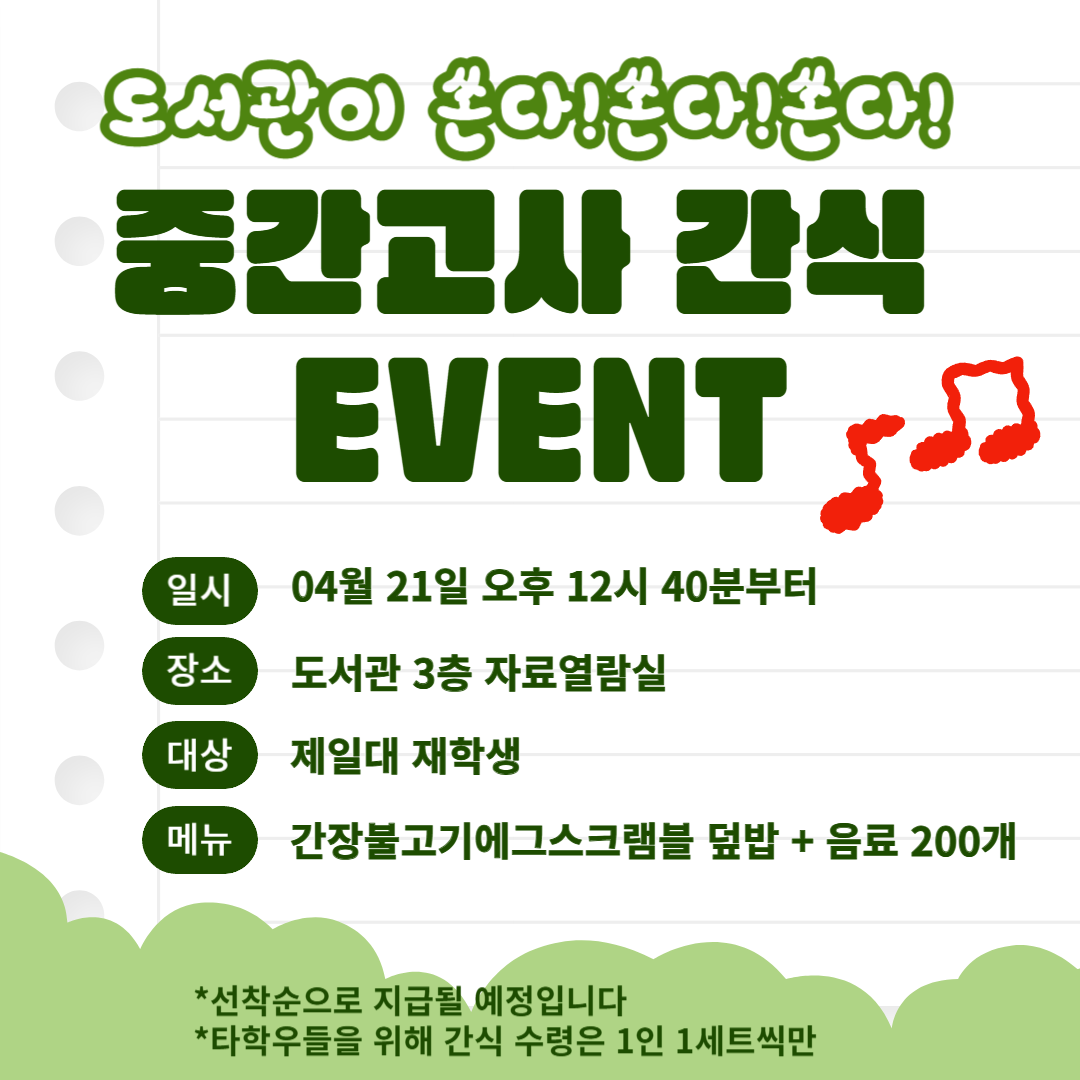 [행사] 2026학년도 1학기 중간고사 시험기간 간식 나눔 행사 안내